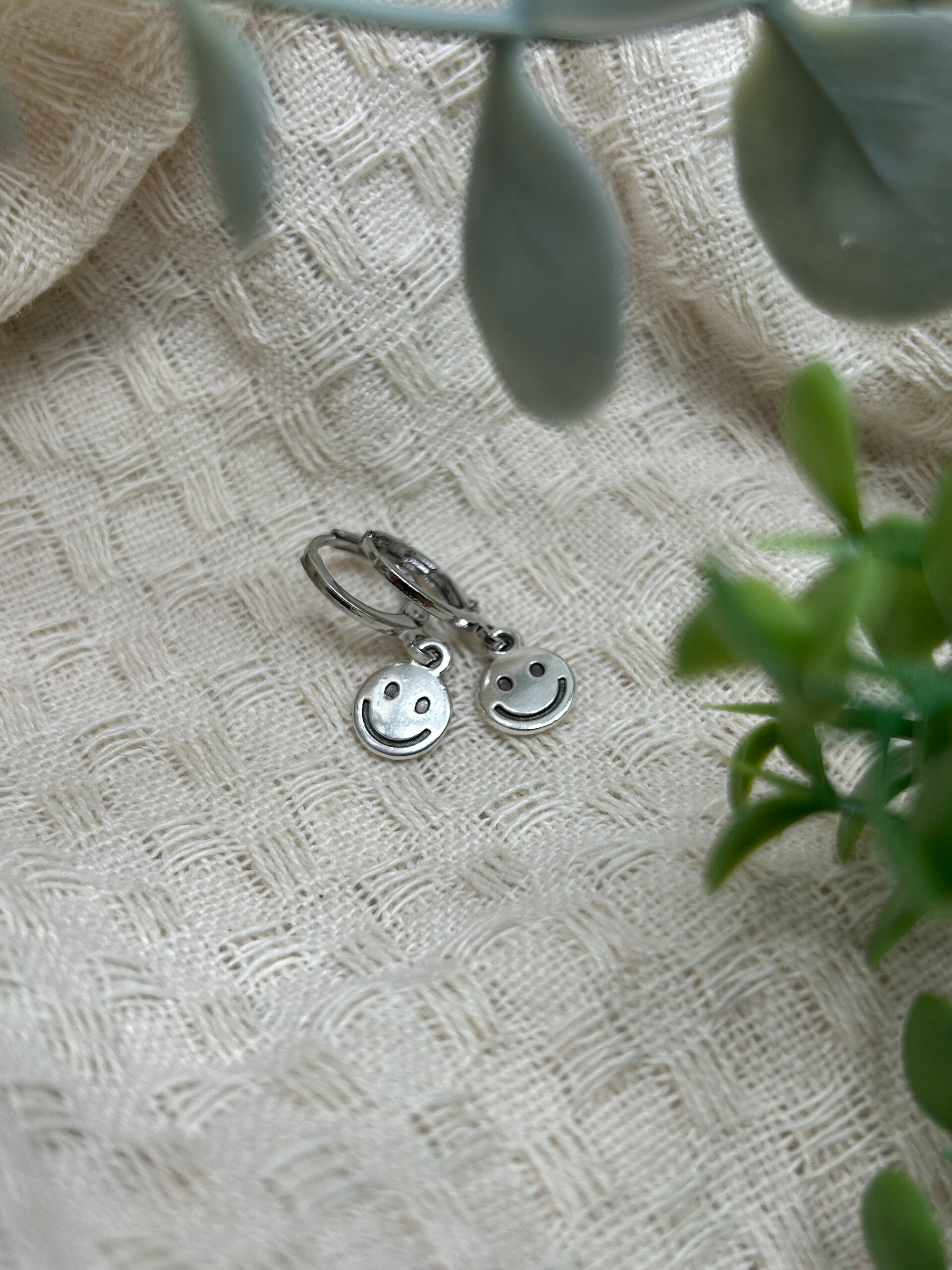 Een zilverkleurig oorbelletje in kwaliteitsvol DQ-metaal met een zilveren smiley als hanger. Ook uitermate geschikt als veilige oorbel voor kinderoortjes.