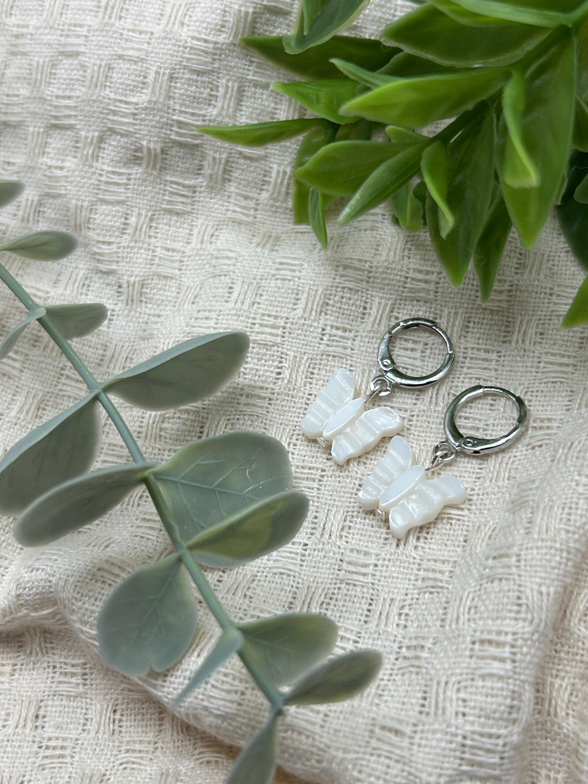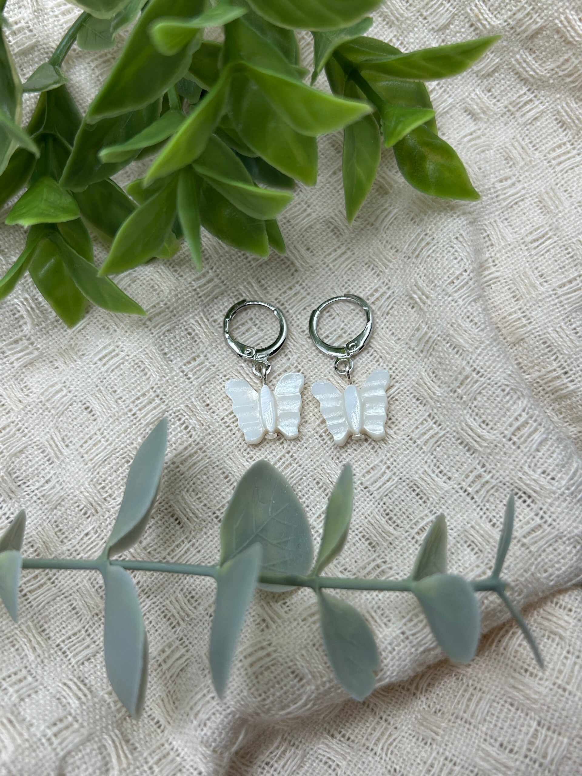Deze zilverkleurige oorbellen van DQ-metaal met een witte vlinder zijn licht en dus uitermate geschikt voor kinderoortjes.