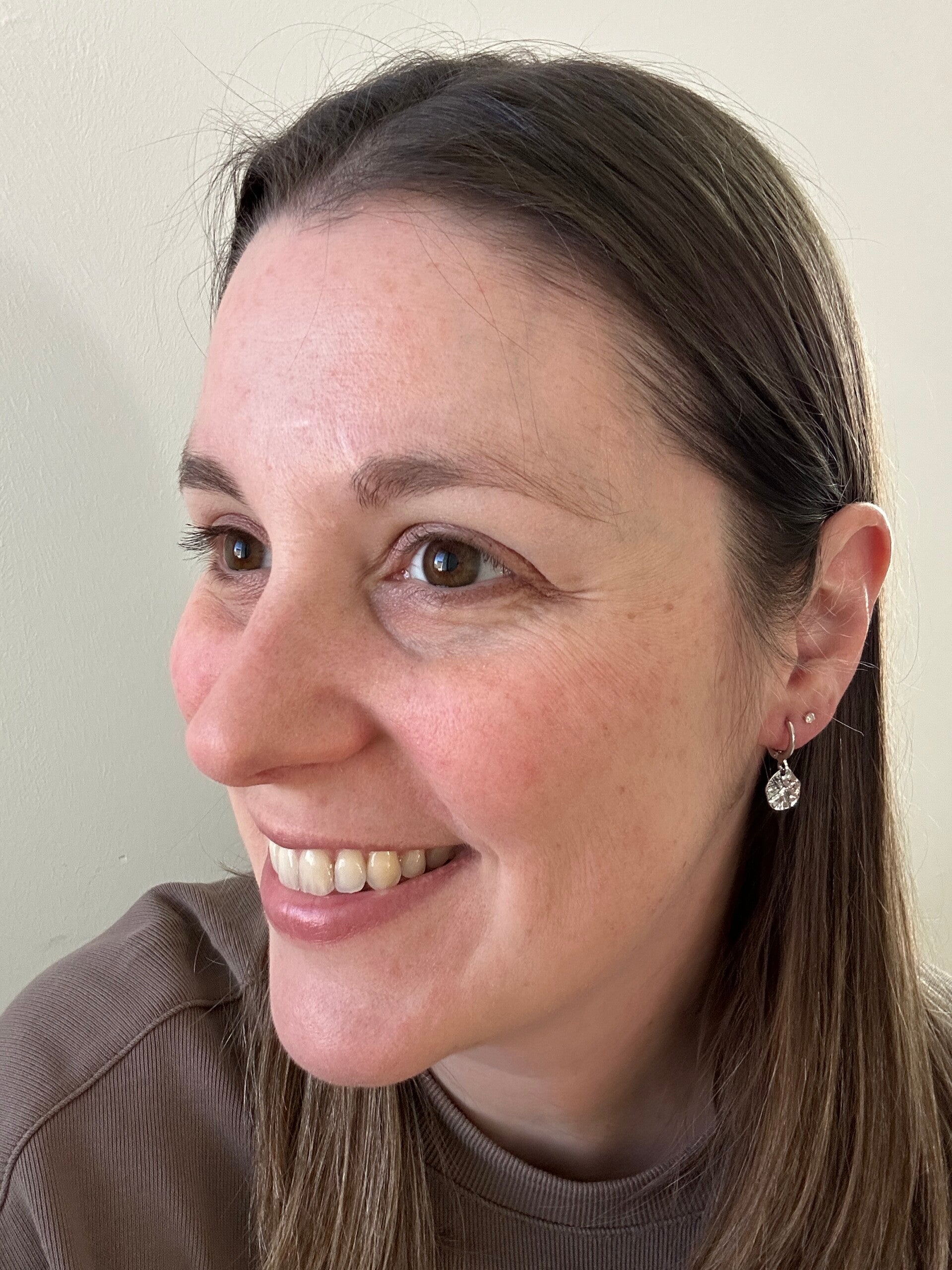 Een zilverkleurig oorbelletje in DQ-metaal met een zilveren plaatje. Deze oorbelletjes zijn ook geschikt voor kinderoortjes.