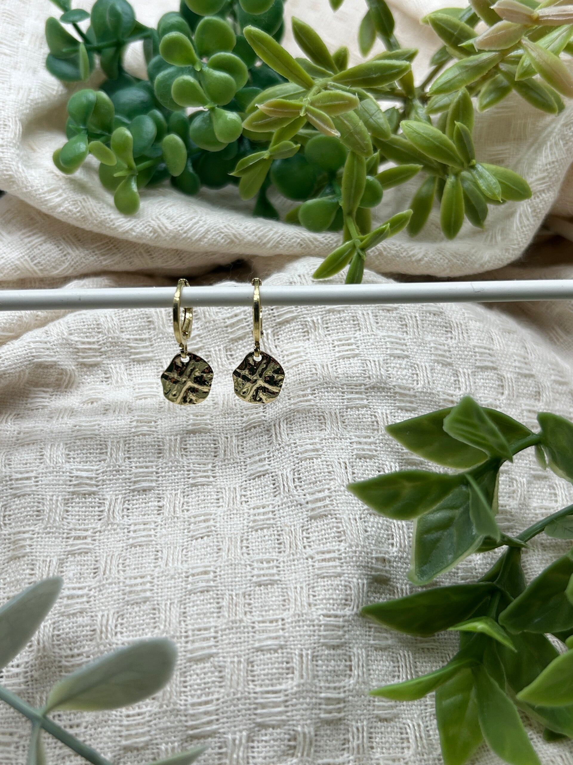 Een goudkleurig oorbelletje in DQ-metaal met een goudkleurig plaatje. Deze oorbelletjes zijn ook geschikt voor kinderoortjes.