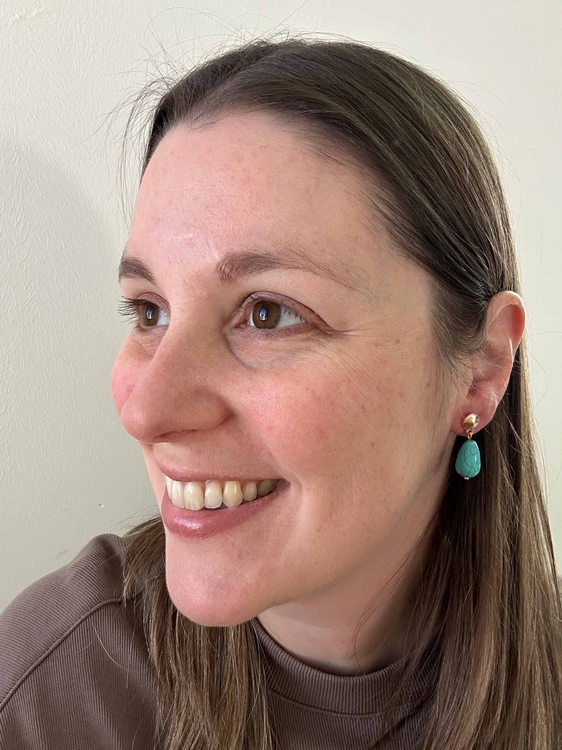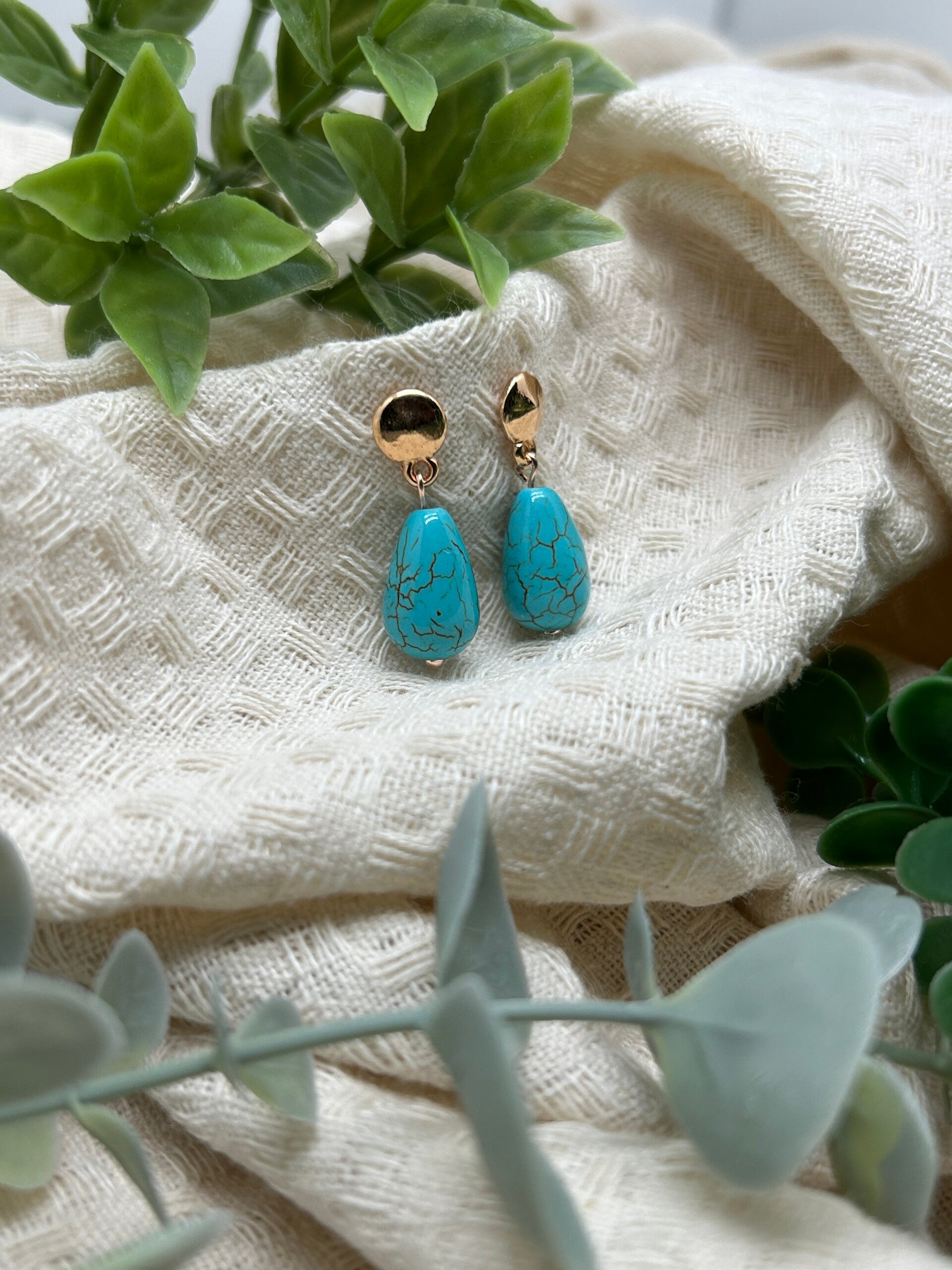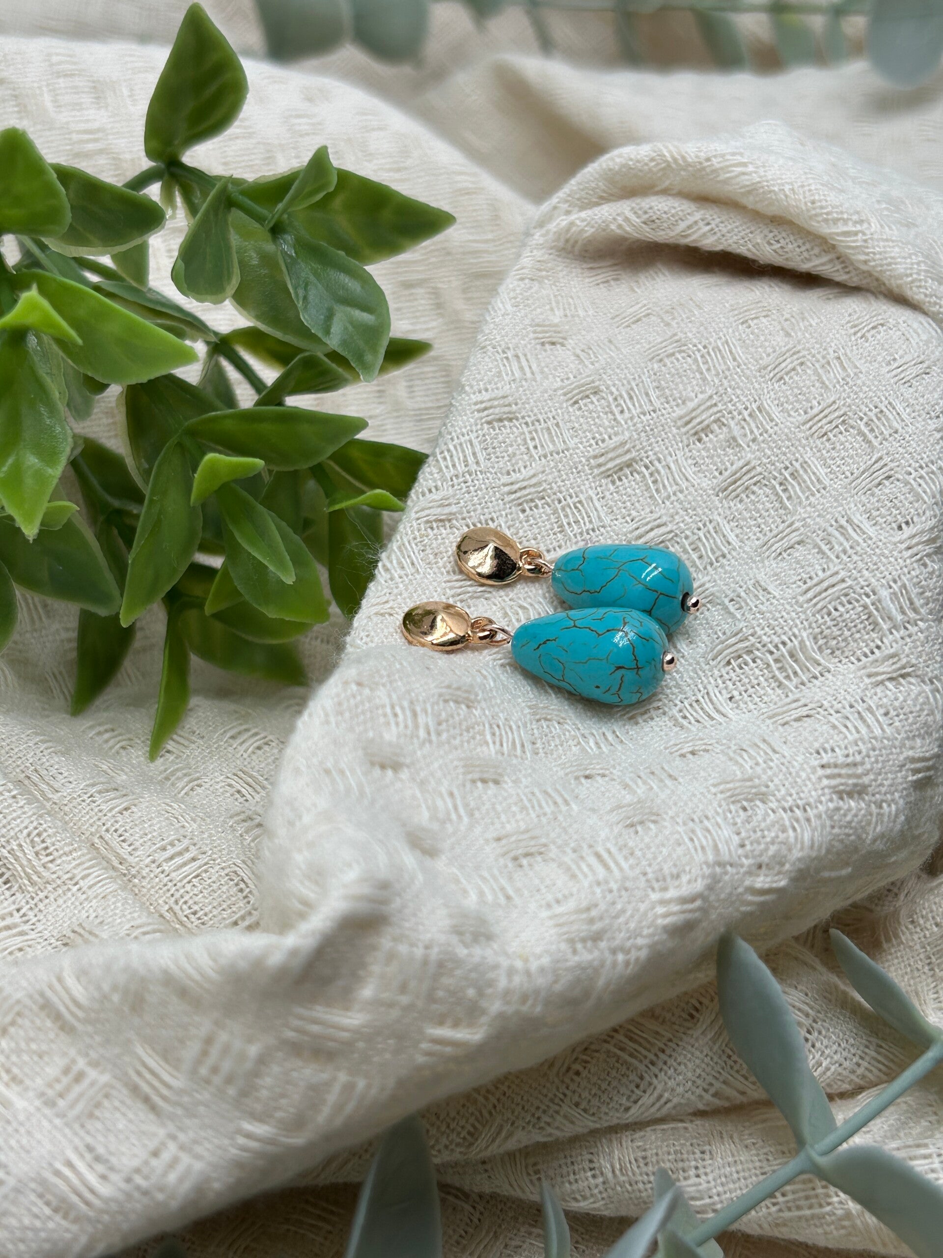 Deze rosé goudkleurige oorbellen zijn gemaakt van DQ-metaal met een hanger in een prachtig turkoois.