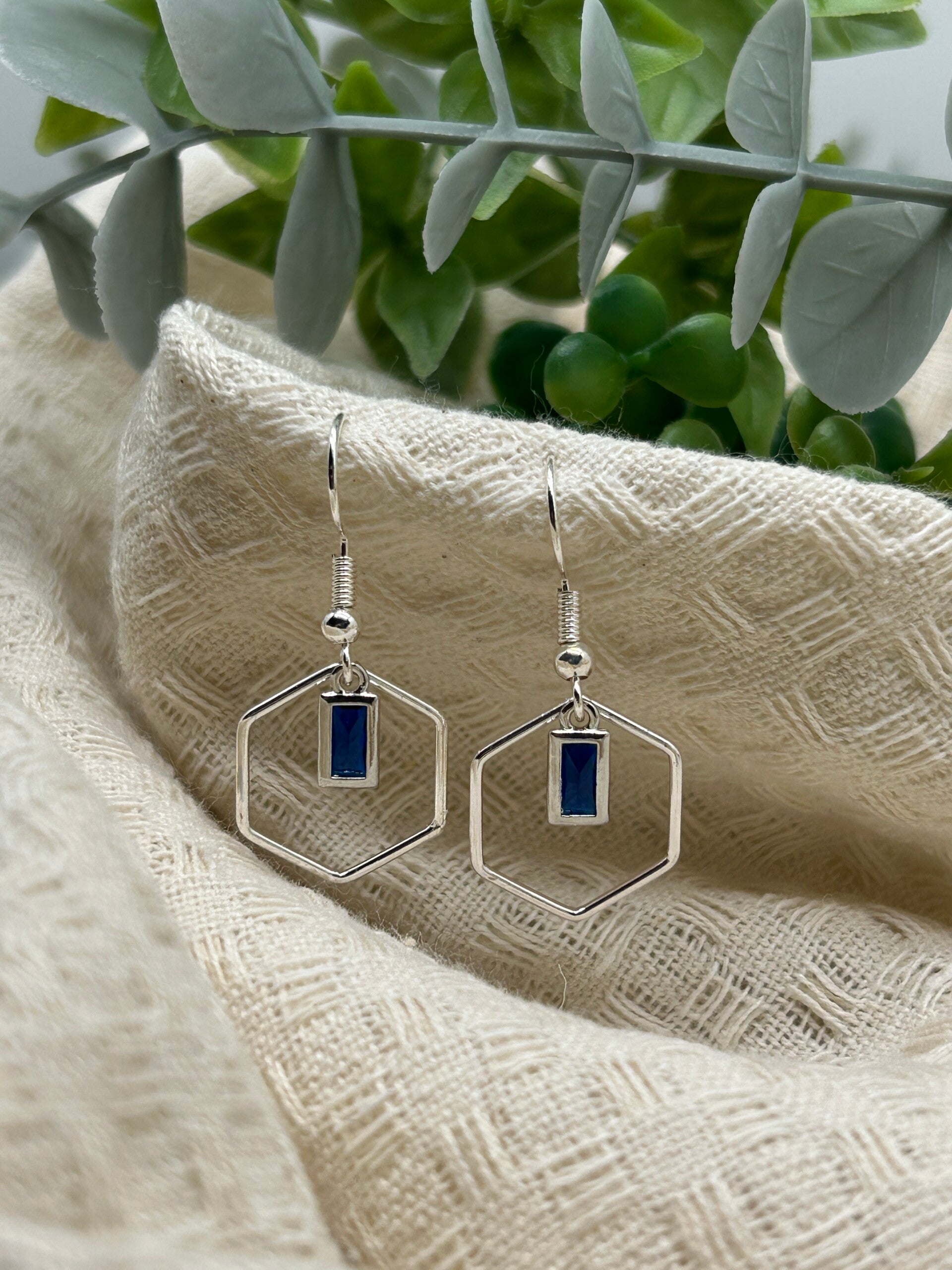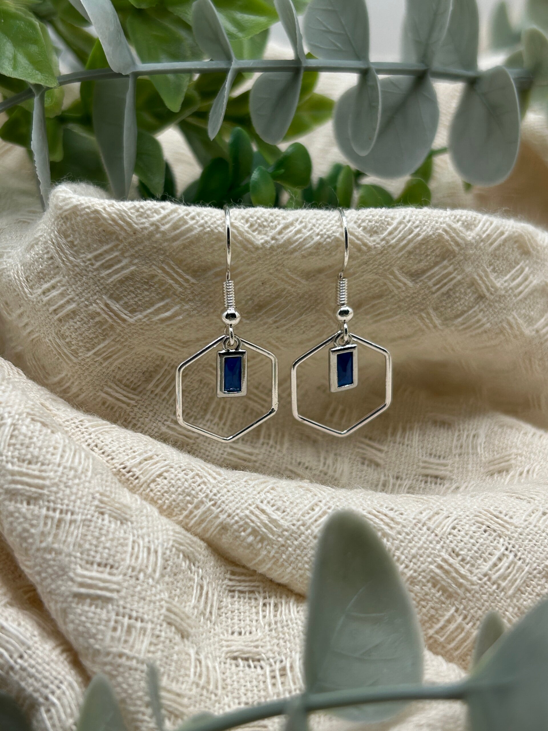 Deze zilvverkleurige oorbellen met een blauwe diamant vormen een mooie basis voor elke dag.