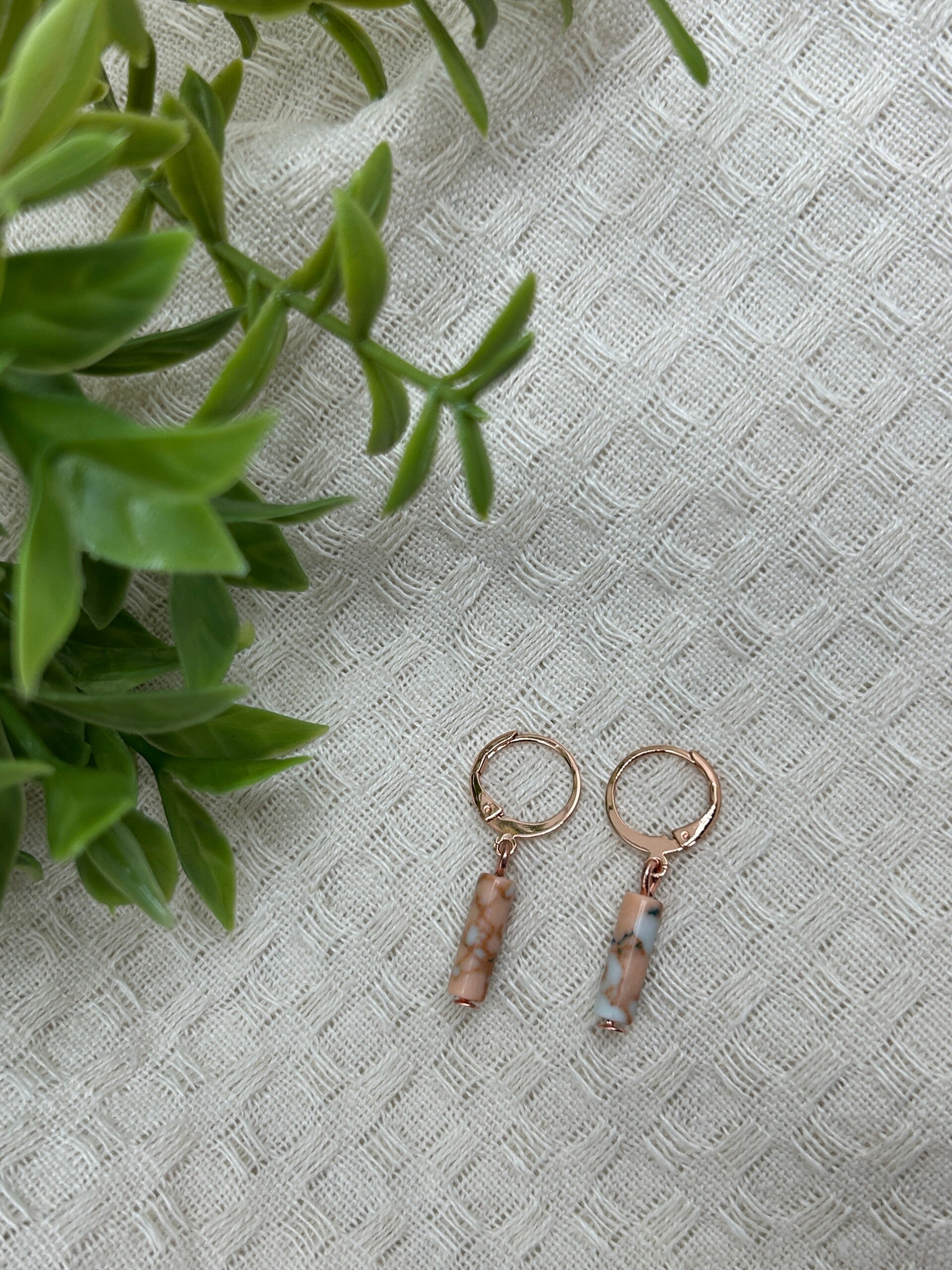Deze rosé gouden oorbellen zijn gemaakt met kwaliteitsvol DQ-metaal, met een hanger van kwartsiet natuursteen in licht turquoise en roze.