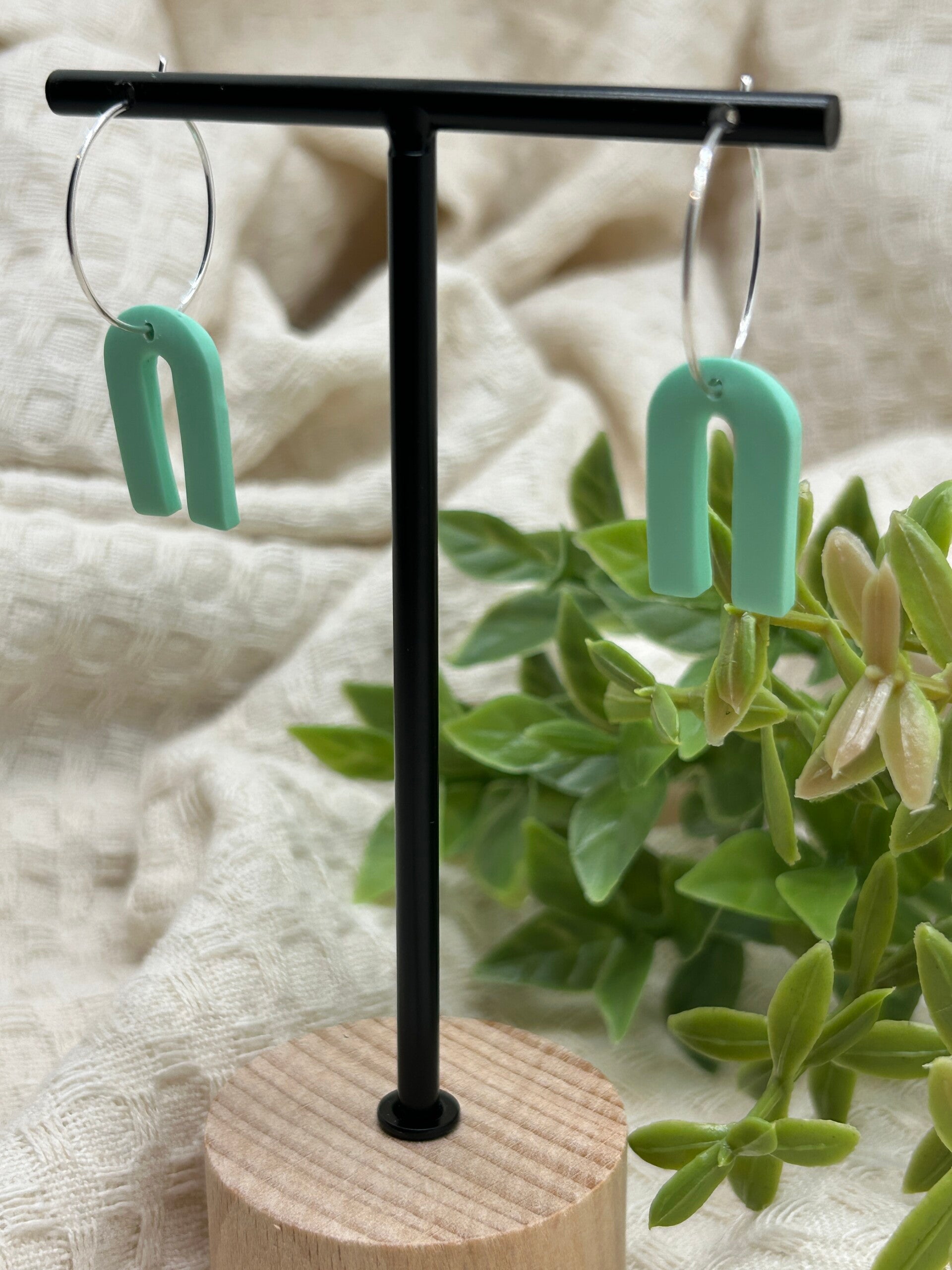 Deze unieke oorbellen uit een prachtig muntgroen zijn uiterst licht en zorgen voor een speelse look! De glanzende zilverkleurige hoop kan naar wens aangepast worden naar goud of zwart.
